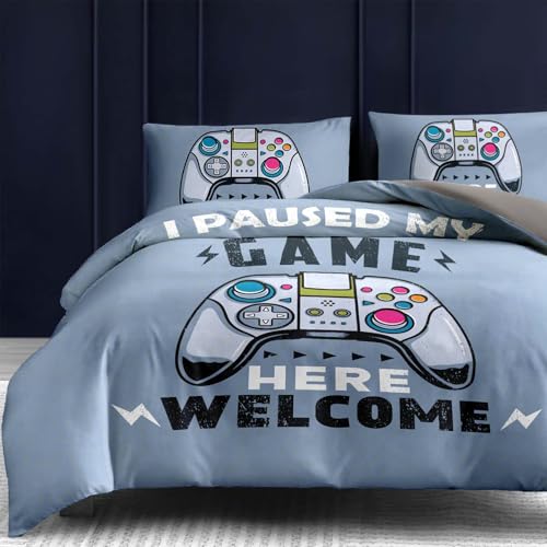 Gaming Bedding Sets for Boys&girls Single,Gamer Comforter Cover Set, Video Game Room Decor, Teens Kids Gamepad Game Controller Duvet Cover, 1 Soft Duvet Cover + 1 Pillowcase (No Filling Inside
