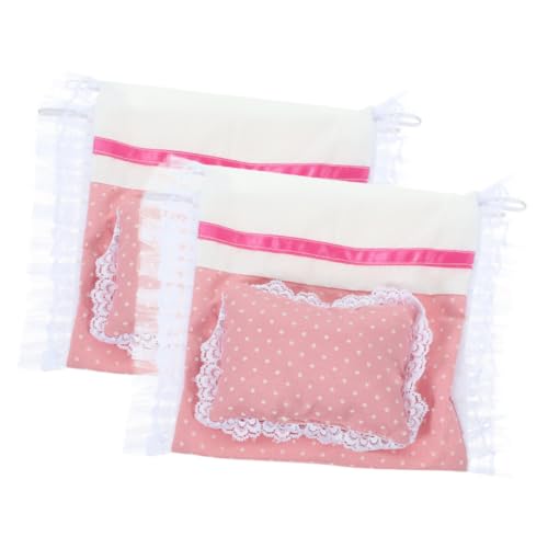 HONITANO 2 Sets Miniature Dollhouse Bedding Kit with Doll Bed Sheet Pillow and Doll Blanket in Games