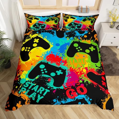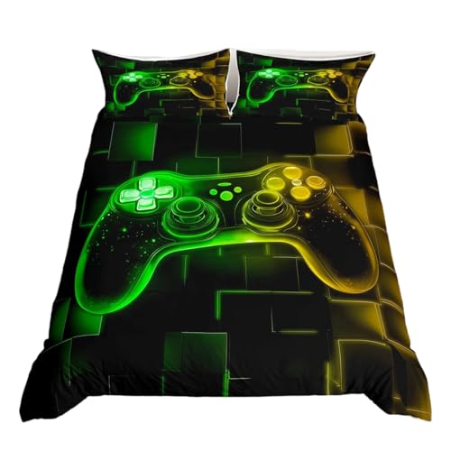 Homewish Gamer Gaming Bedding Sets Double Size,Lightnings Gamepad Duvet Cover, Video Games Comforter Cover for Kid Teens Boys Man, Modern Bedroom