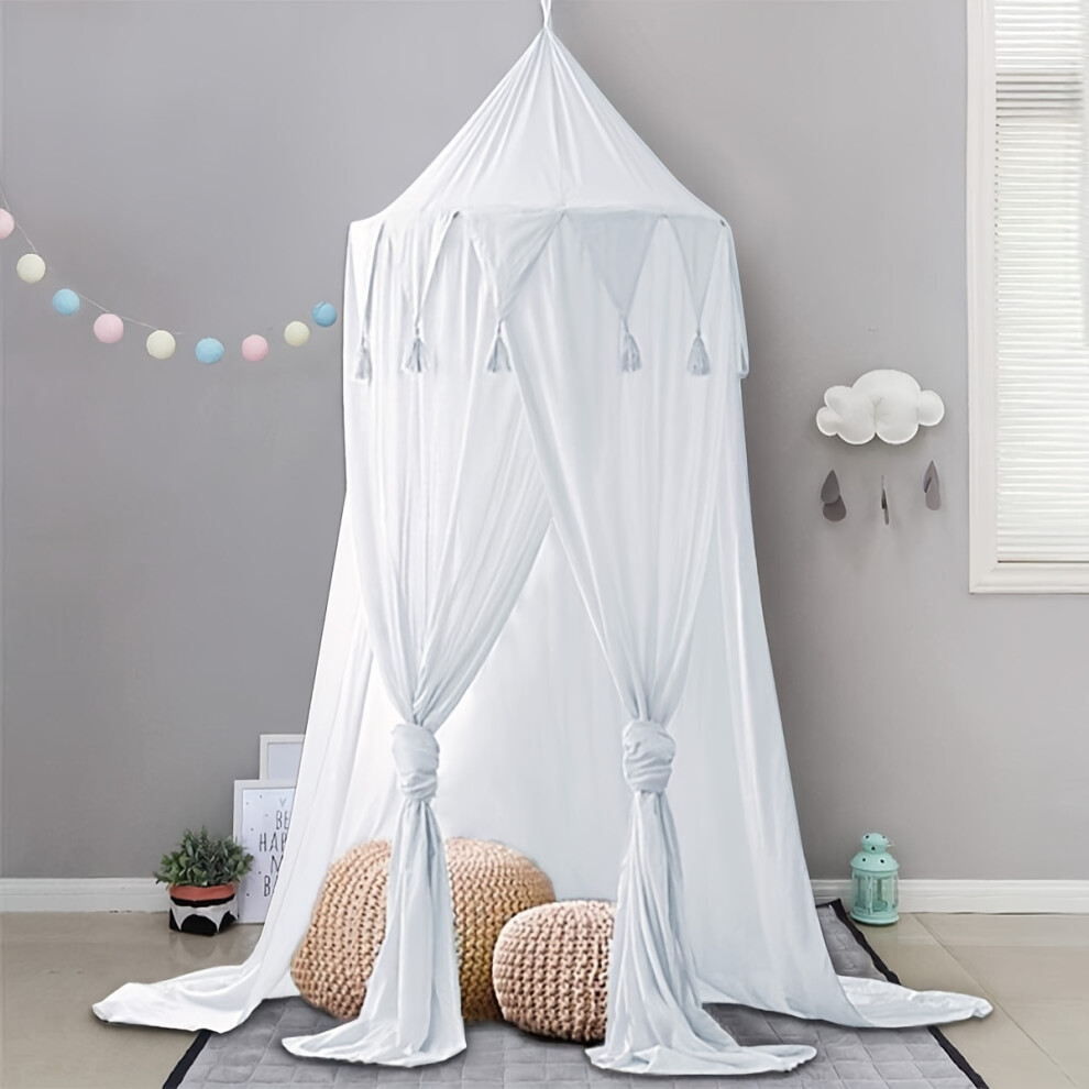 (White) Unique 1pc Bed Canopy | Pendant Play Tent Bedding for Kids with Round Dome Netting Curtains for Baby Boys Girls Games House