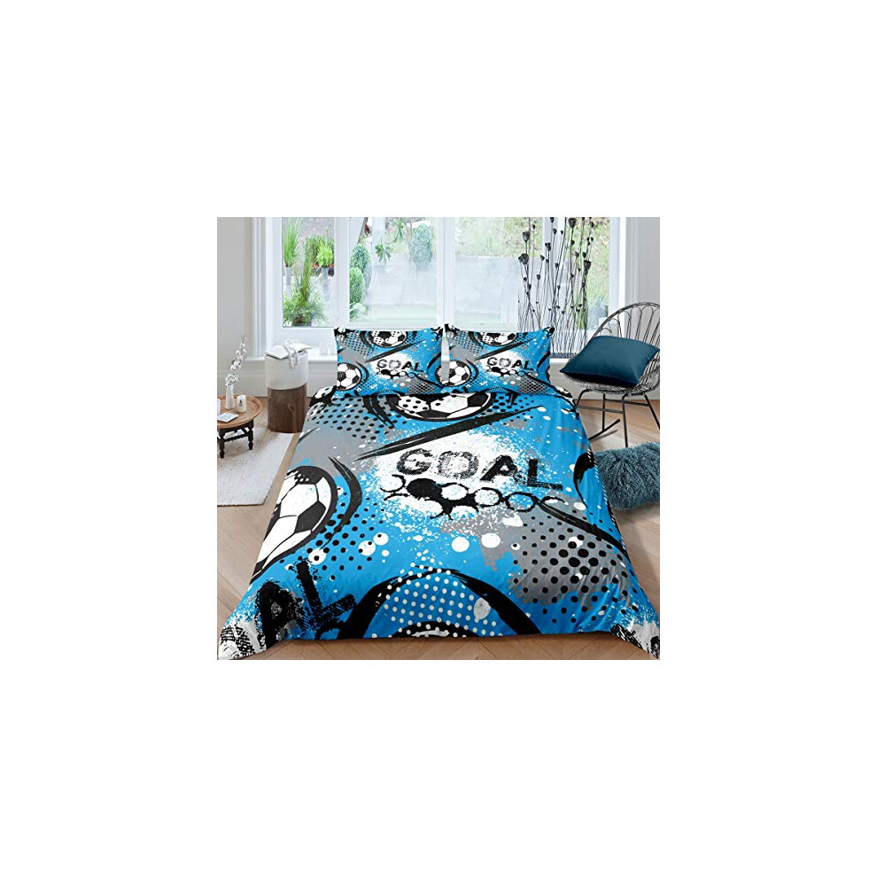 Loussiesd Boys Football Comforter Cover Kids Sports Theme Bedding Set Black White Blue Soccer Ball Pattern Duvet Cover for Children Competitive Games
