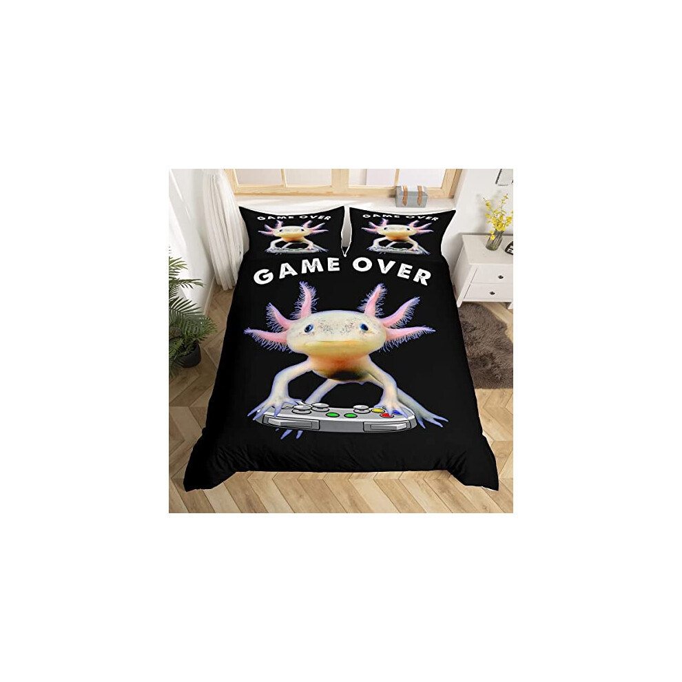 Axolotl Comforter Cover, Cute Axolotl Play Gamer Bedding Set Double For Kids Boys Teens Games Room Decor, Mexican Animal Duvet Cover Aquatic Reptile