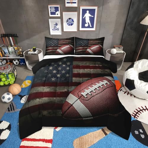 Erosebridal American Flag Bedding Set, Boys Football Comforter Set Full Soccer Sports Games Down Comforter United States Federations Stars Stripes Duvet Sets for Kids Teens Adult Bedroom Decor
