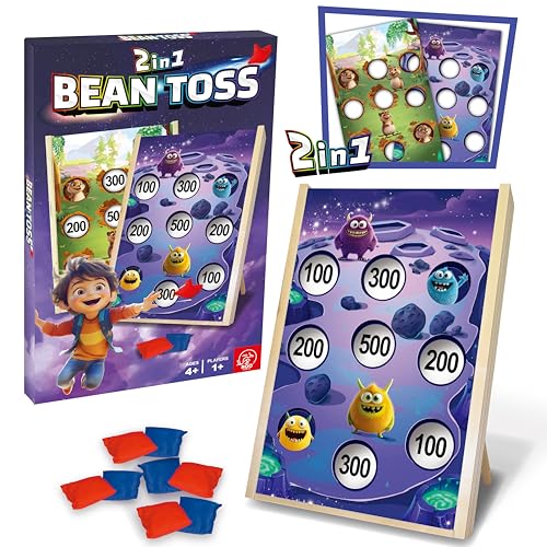 2-in-1 Bean Toss Kids Toys - Double Sided Garden Games with Foldable Legs, Wooden Frame - Fun Indoor & Outdoor Games for All Ages - Quick Setup, Portable & Lightweight Party Game