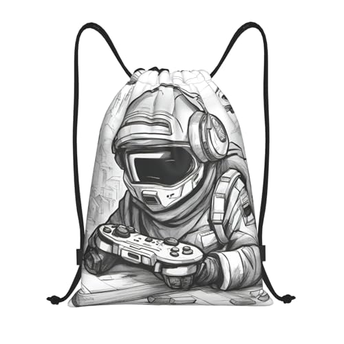 Foldable Drawstring Bag Monochrome Sketch Style Gaming Print Swimming Backpack Personalised Cinch Sack For Activities Yoga Teenager 36X42Cm