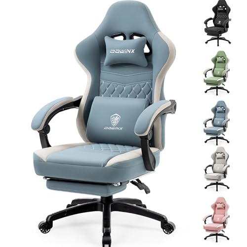 Dowinx Gaming Chair Fabric with Pocket Spring Cushion, Computer Gaming Chair with Footrest, Ergonomic PC Chair, Gamer Chair, Office Chair, 150 kg Load Capacity, Blue