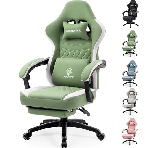 Dowinx Gaming Chair Fabric with Pocket Spring Cushion, Computer Gaming Chair with Footrest, Ergonomic PC Chair, Gamer Chair, Office Chair, 150 kg Load Capacity, Green
