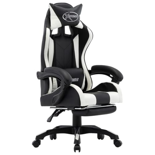 Hoopleep Gaming Chair with Footrest, White and Black Faux Leather, Ergonomically Adjustable, Executive Chair for Office, Bedroom and Study Comfortable Swivel Chair