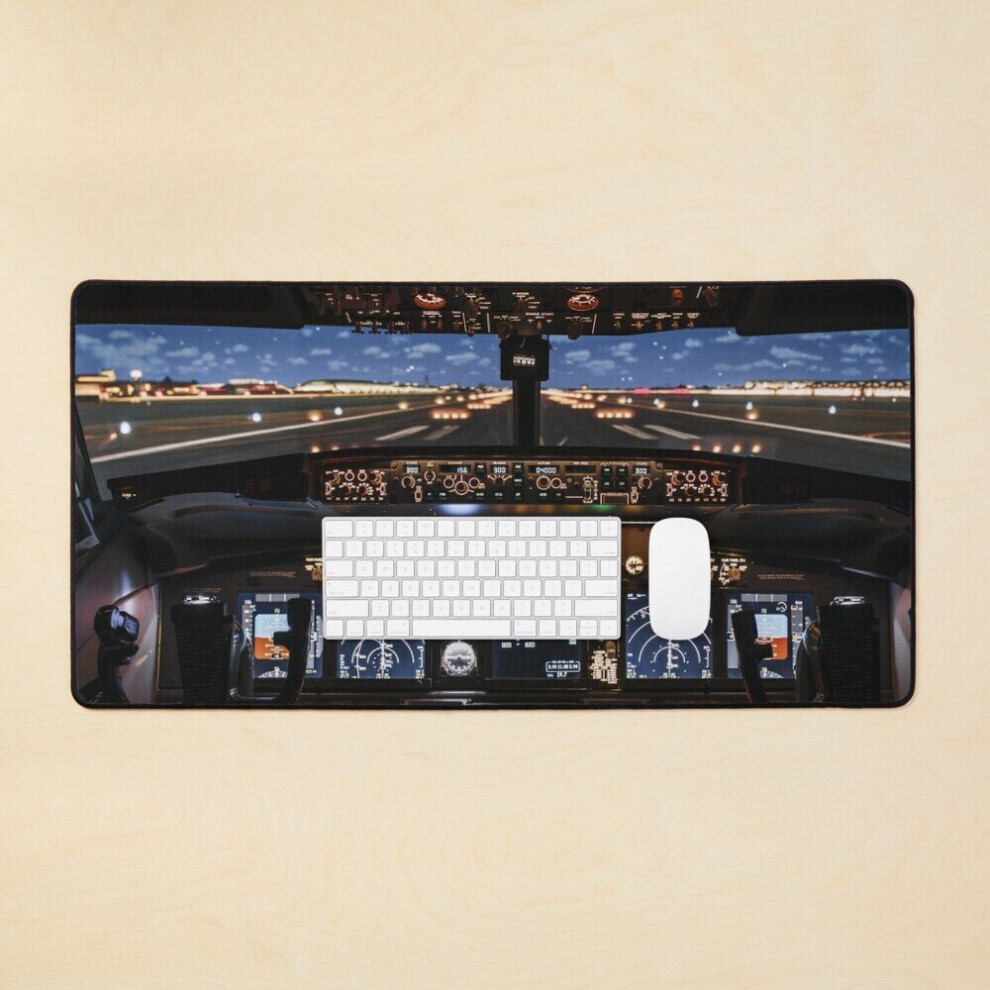 Desk Mat Airplane Cockpit Travel Aviation Aircraft Large Gaming Mouse Pad 35x16 inch