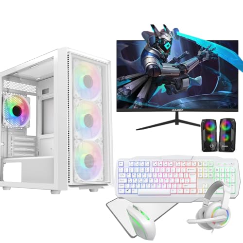EZZTECH Gaming PC Desktop Computer Bundle, Core i5, 16GB RAM, GT 730 4GB, 128GB SSD + 1TB HDD, 500W 80+ PSU, RGB Case, WiFi, Windows 11, 22" Monitor (White Bundle)