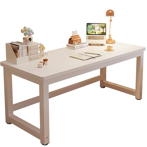 HSH Industrial Home Office Computer Desks, Farmhouse Metal and Wood Desk Computer Table, Simple Bedroom Laptop PC Desks for Student Writing Study Gaming Executive Workstation, White, 150cm