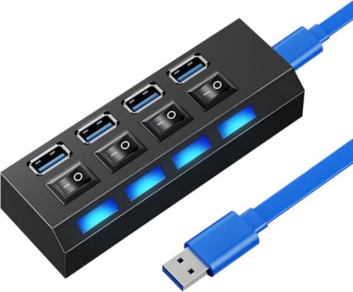 Generic High-Speed 4-Port USB Hub with Individual LED Power Switches - USB Splitter for Mouse, Keyboard, Printer - Compatible with Laptops, Desktops, Gaming Consoles (Black)