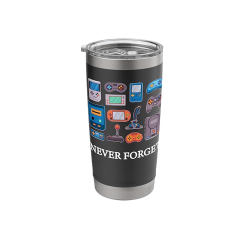 Vintage 90s 80s Gaming Consoles & Controllers Never Forget Stainless Steel Insulated Tumbler