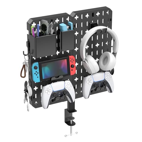 KDD Desk Pegboard Combination Kit - 7 in 1 Gaming Desk Pegboard with Phone Stand/Pen Holder/Storage Box/Headset & Controller Holder/Hooks for Office & Home Desktop Pegboard Organizer
