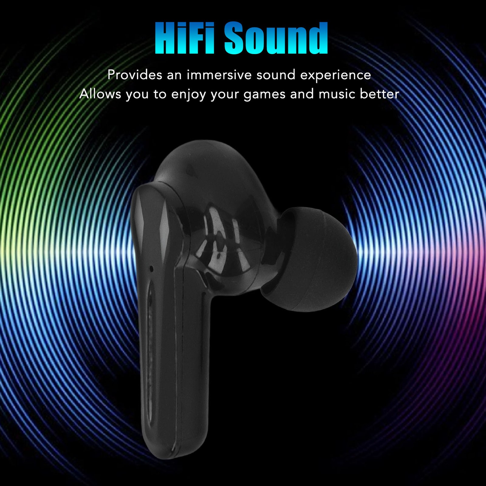 (Black) TWS bluetooth 5.1 Earphone HiFi 3D Stereo Low Latency Gaming Earphones Touch Control Headsets With Microphone