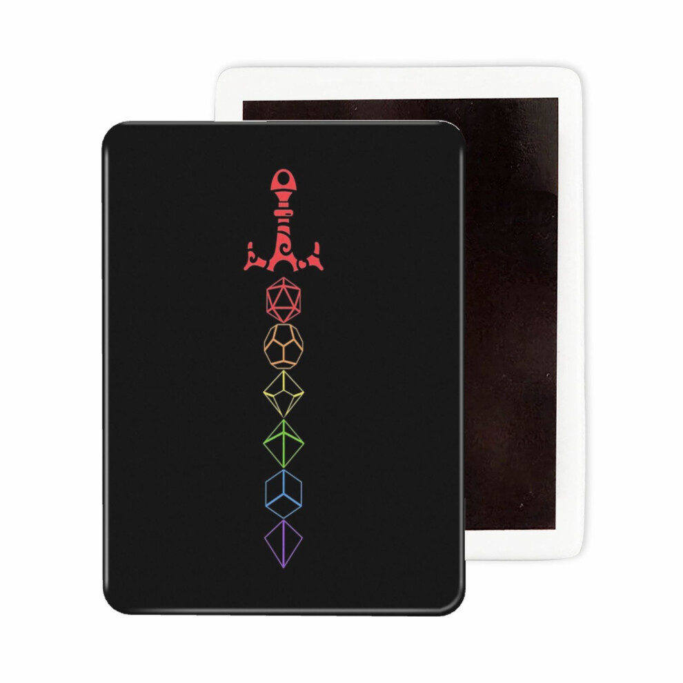 (Rainbow Dice Sword Tabletop RPG Gaming_698) Fridge Magnets Ceramic Refrigerator Magnet Handmade Graphic Artwork Kitchen Decorative Accessories / 2.4