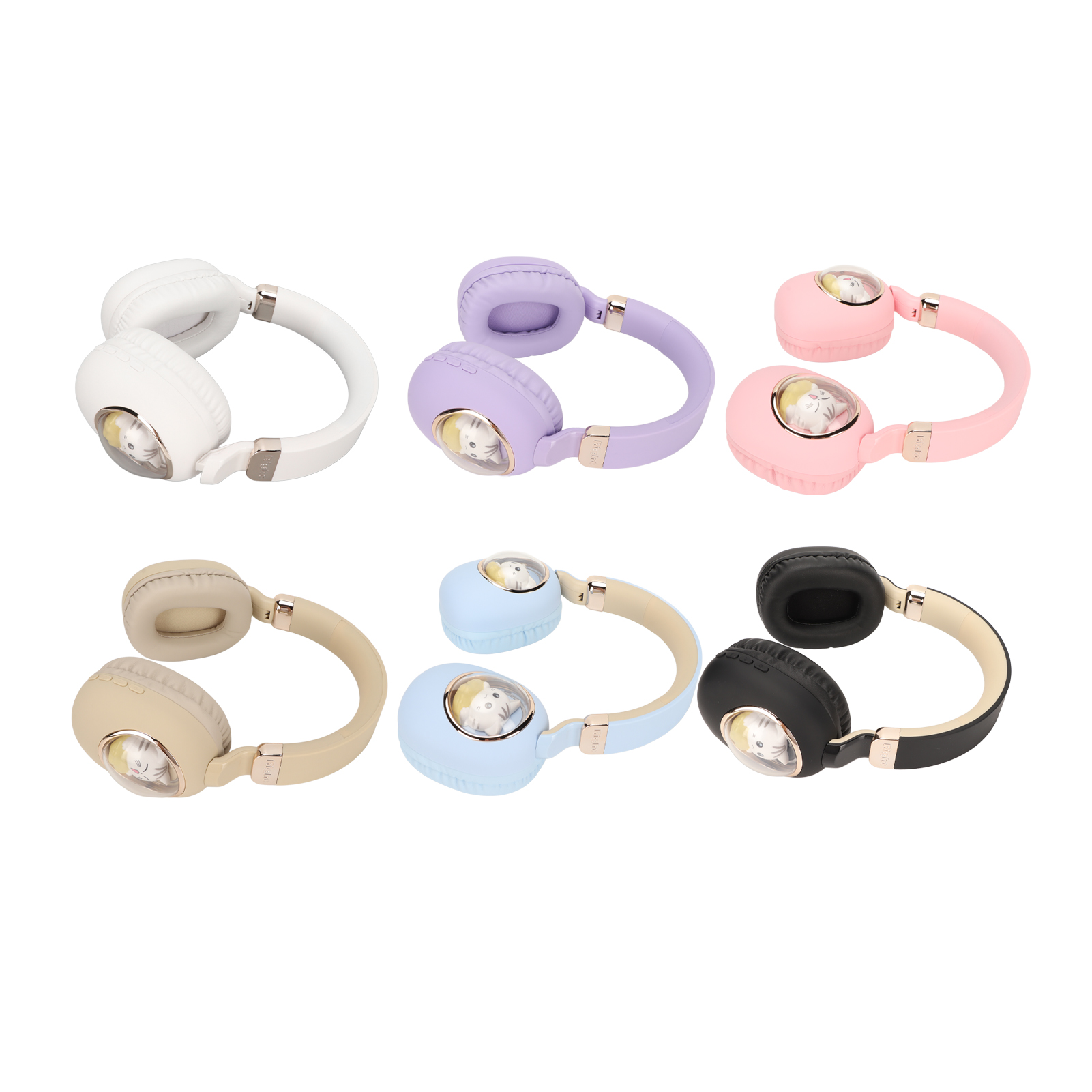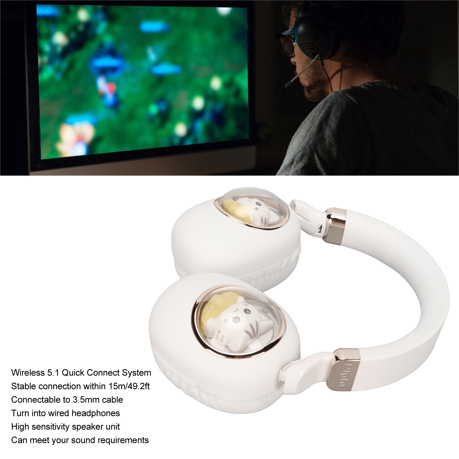 BT Gaming Headset Cute Cartoon Stereo Headphones With Wired Earbuds And LED