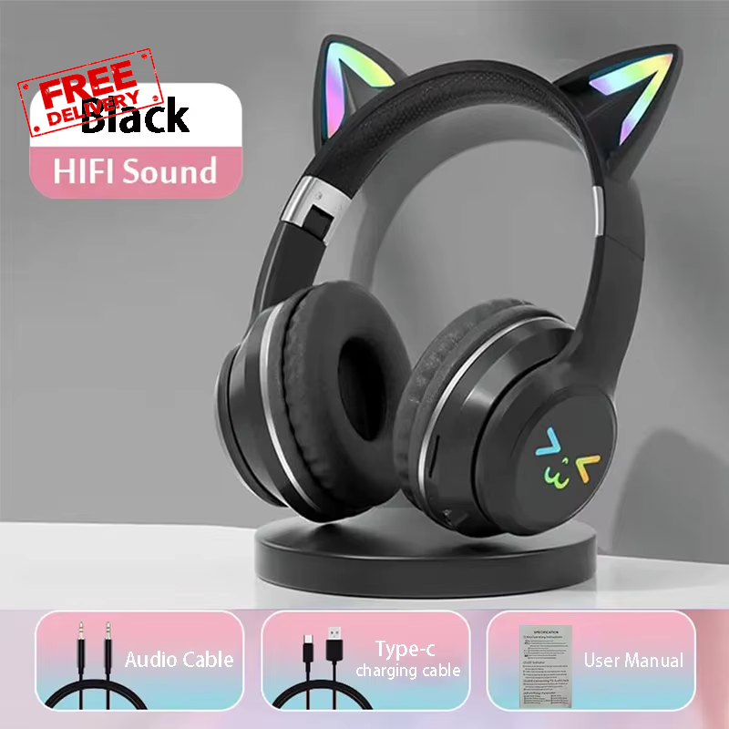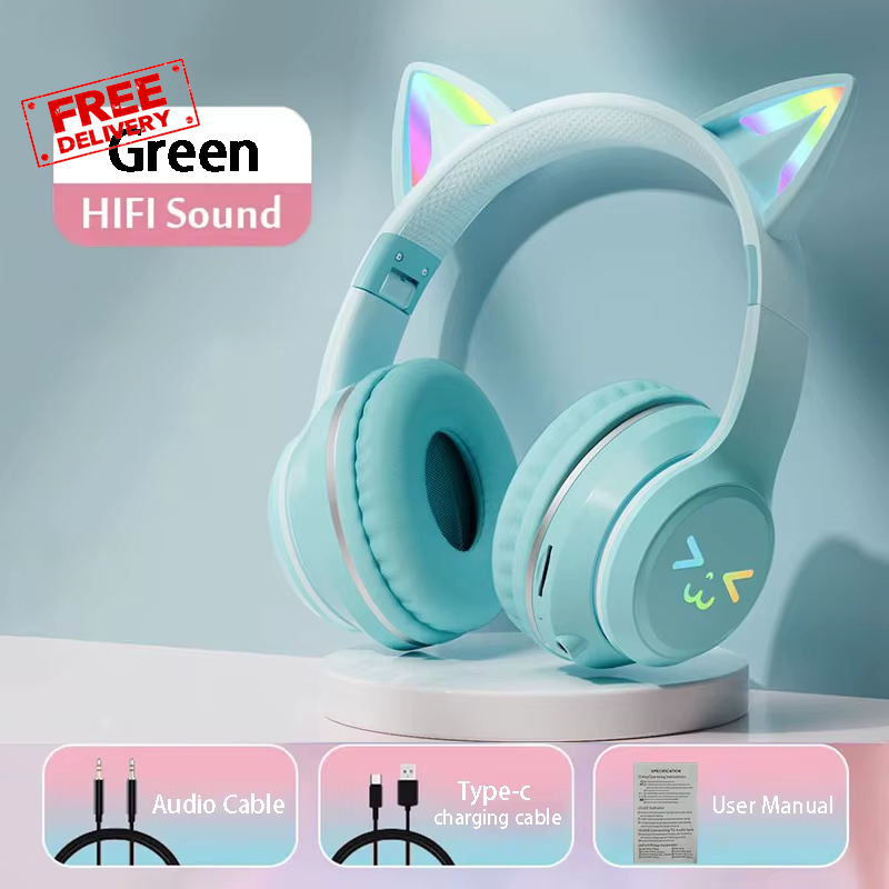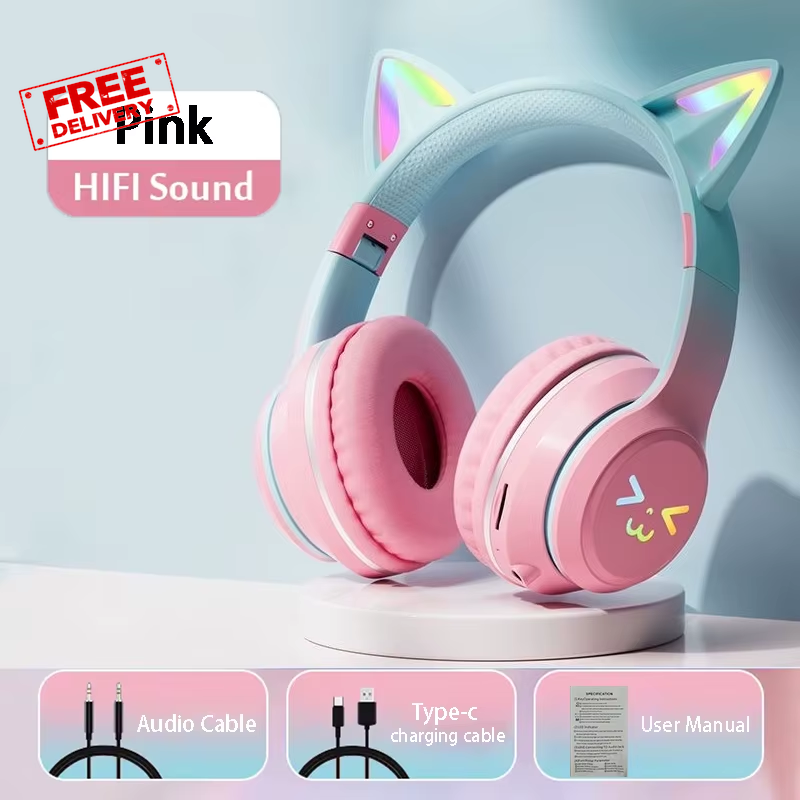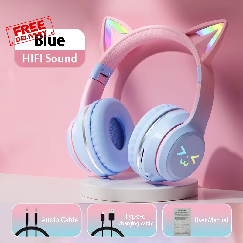 ¸BT Gaming Headset Cute Cartoon Stereo Headphones With Wired Earbuds And LED