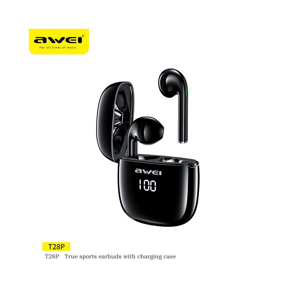 (a-Black) Awei T28P Bluetooth Earphones In-ear LED Display Wireless Headphones Gaming Earbuds With Microphone For iPhone Hauwei Xiaomi
