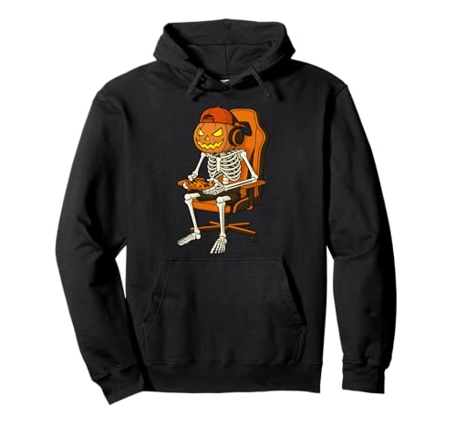 Halloween Jack-o'-lantern Pumpkin Skeleton Gamer Gaming Pullover Hoodie