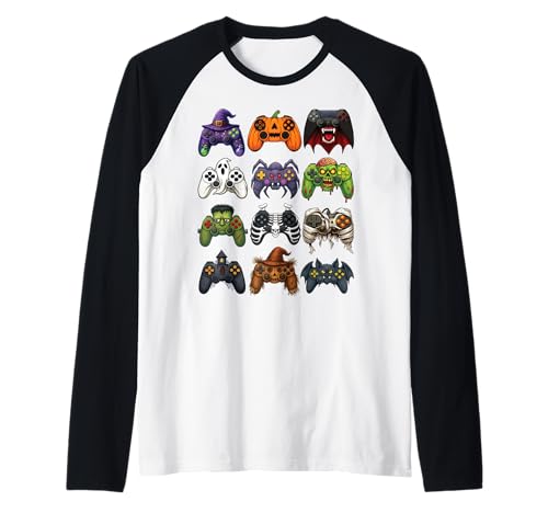 Halloween Gaming Controllers Jack O Lantern Pumpkin Witch Raglan Baseball Tee