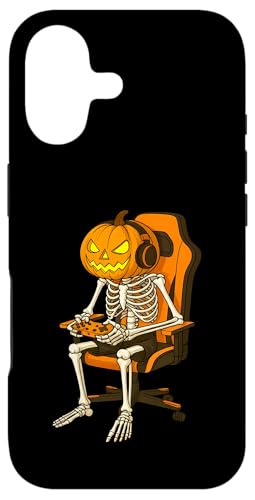 Halloween Jack-o'-lantern Pumpkin Skeleton Gamer Gaming Case for iPhone 16 Pro