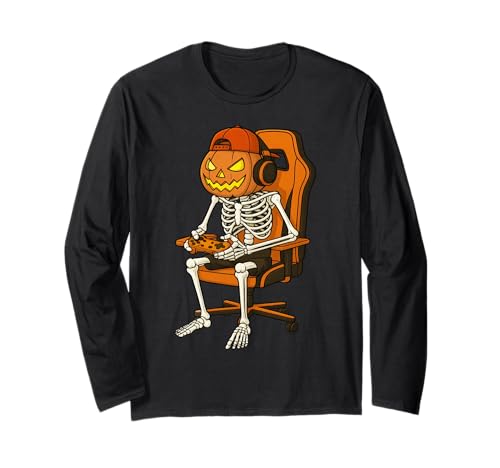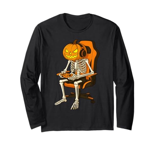 Halloween Jack-o'-Lantern Pumpkin Skeleton Gamer Gaming Long Sleeve T-Shirt