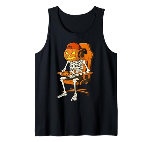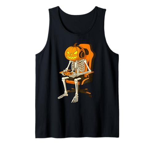 Halloween Jack-o'-Lantern Pumpkin Skeleton Gamer Gaming Tank Top
