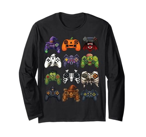 Halloween Gaming Controllers Jack O Lantern Pumpkin Witch Long Sleeve T-Shirt