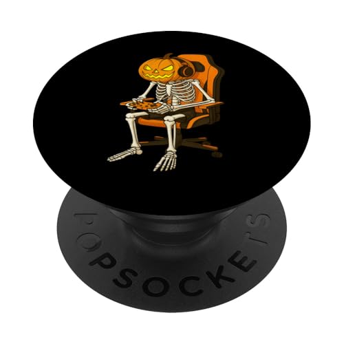 Halloween Jack-o'-lantern Pumpkin Skeleton Gamer Gaming PopSockets Adhesive PopGrip