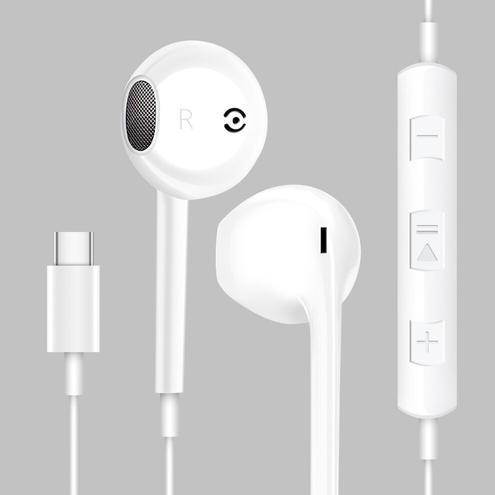 (a-White) For Samsung Galaxy S22/S21/S20 FE/Note 20/10 Wired USB-C Type C Earphone With Bass Earbuds Music Sport Gaming sport Headset mic