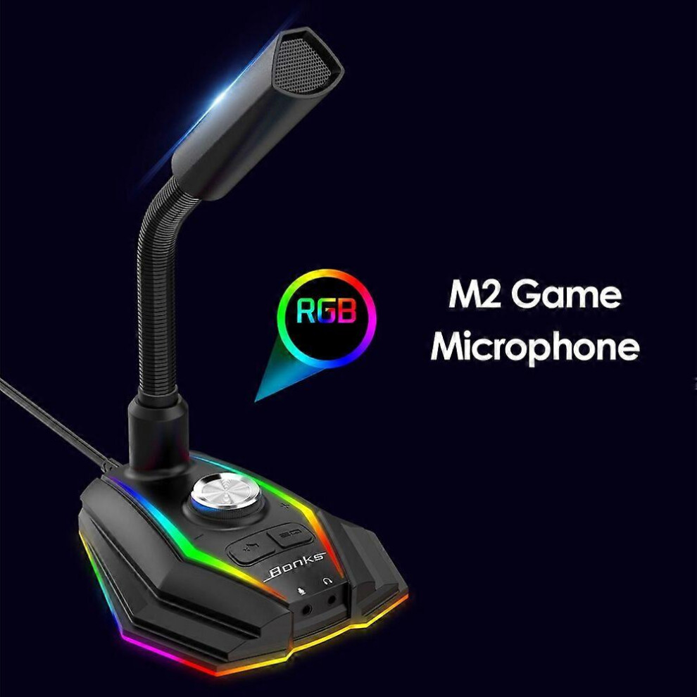 (As show, One size) USB Sound Card RGB Microphone Computer Gaming Mic With Speaker Headset Jack Free Drive Noise Reduction 360 Rotate HD Receiver