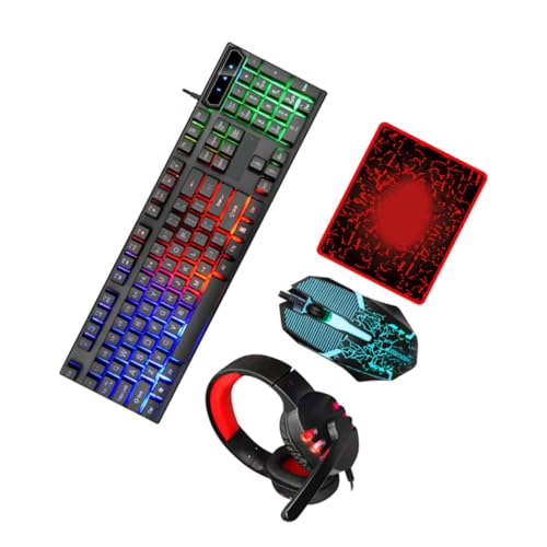 LRXIYODE Rgb Wired Gaming Keyboard Mouse Headset and Mousepad Ergonomic Design with Colorful Backlit Keys and Cracked Texture for Office and Game Use