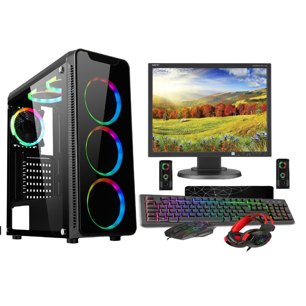 (6 Fans RGB, GTX1660 6GB) Gaming PC Bundle Intel Core i7 16GB Ram 1TB+128GB SSD RTX3060 12GB - 22" Monitor Full setup Light Speakers
