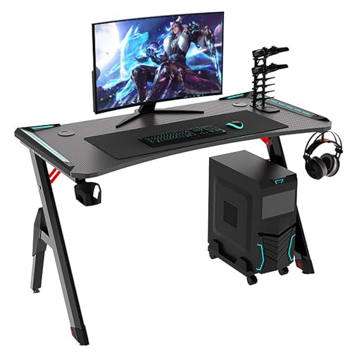 zxhrybh Ergonomic Gaming Desk with Carbon Fiber Top, Cup Holder, Headphone Hook and Cable Management Pc Desk, for PC & Home Office(55.1in/140cm)