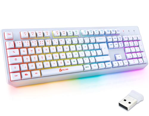 KLIM Chroma Wireless Keyboard UK Layout - Slim, Durable, Ergonomic, Quiet, Waterproof, Silent Keys - Backlit Wireless Gaming Keyboard For Laptop PC Gamer PS4 Mac - NEW VERSION - White