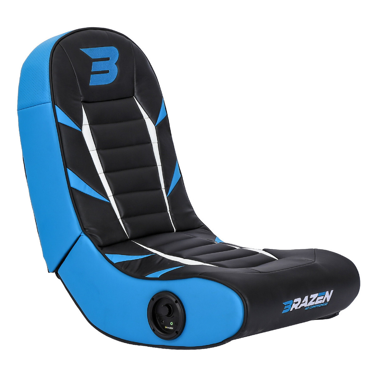 BraZen Python 2.0 Bluetooth Surround Sound Floor Rocker Gaming Chair Black Blue