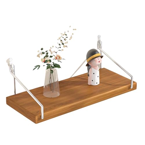 Ywmsfl Natural Wood Projector Shelf for Gaming Console Router and Remote Control Storage Without Drilling Natural Wood Wall Shelf