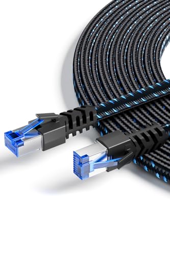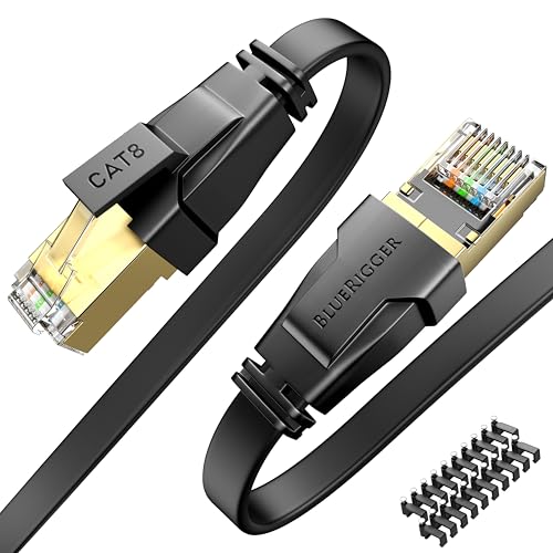 BlueRigger CAT8 Flat Ethernet Cable - 10M (40Gbps, 2000MHz, RJ45) CAT 8 High Speed Internet Network LAN Patch Cord - Compatible with Gaming Console, Router, Modem, PC