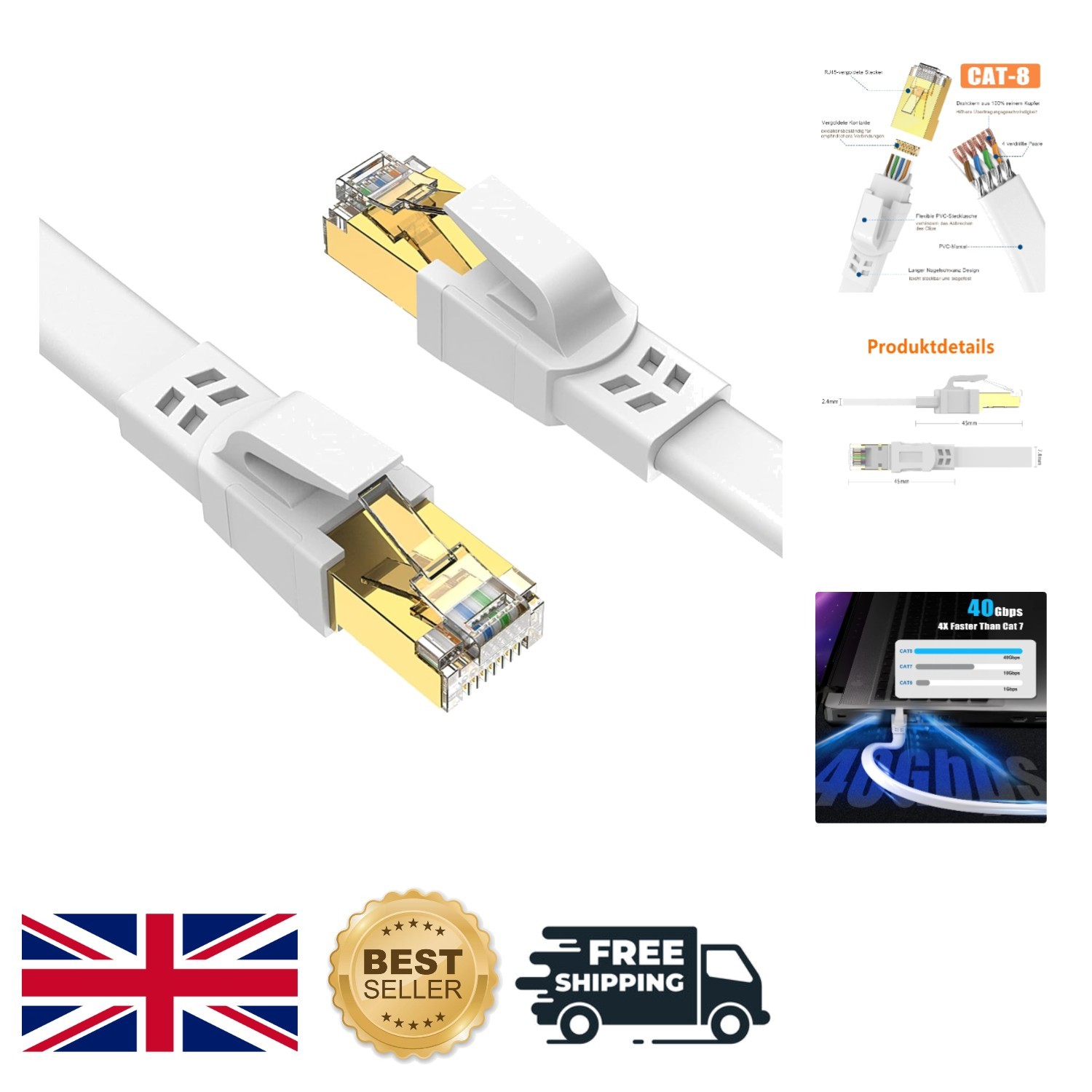 5m High-Speed Ethernet Cable - Cat 8, Flat Design, Ideal for Routers and Gaming