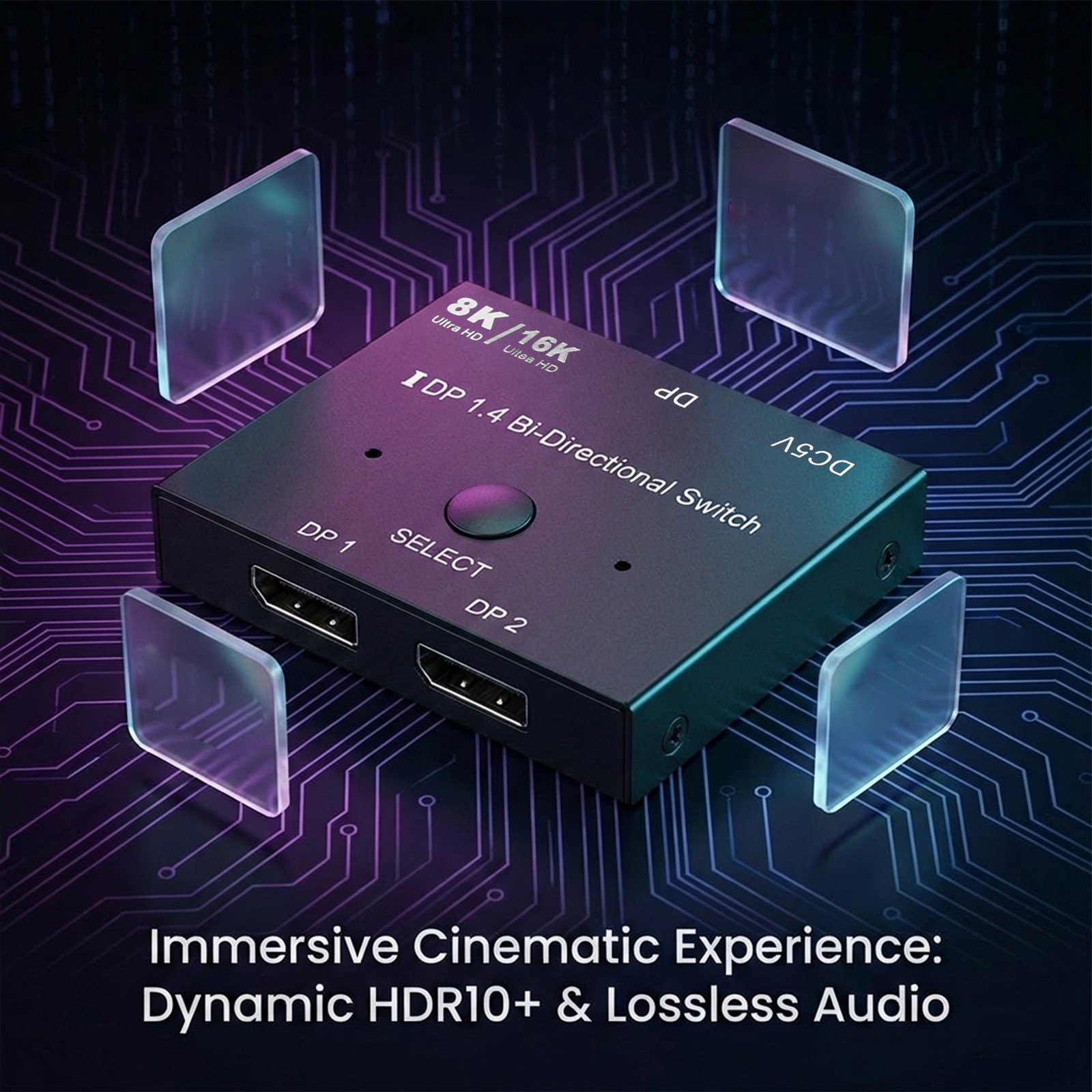 16K/8K DP1.4 Bi-Directional 2x1 60Hz/120Hz HDCP2.3 For Gaming PC TV