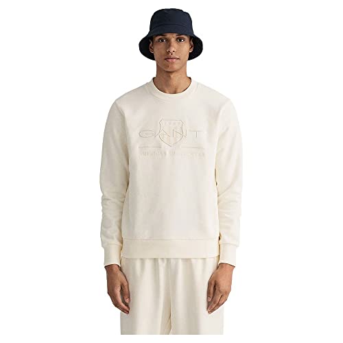 GANT Men's D.1 Tonal Archive Shield C-Neck Pullover Sweater, Eggshell, XL