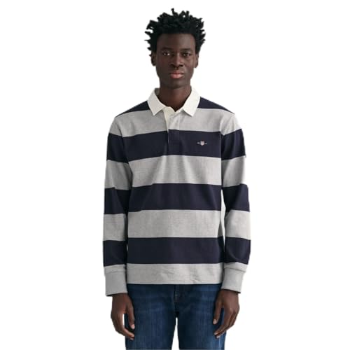 GANT Men's REG Shield Barstripe Heavy Rugger Shirt, Grey Melange, Standard, Grey Melange, XXL