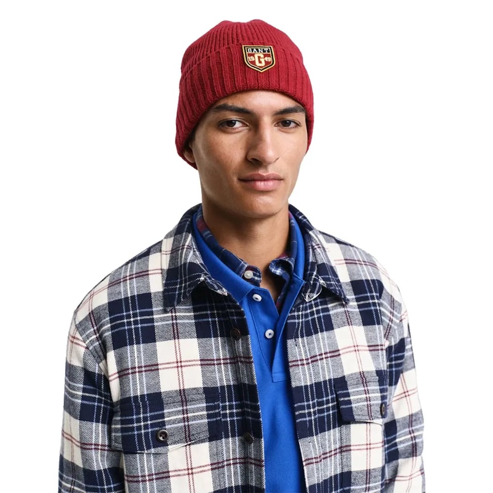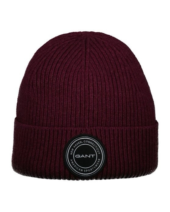 GANT Plumped Red 80% Wool Ribbed Beanie Hat Adult NEW Tags