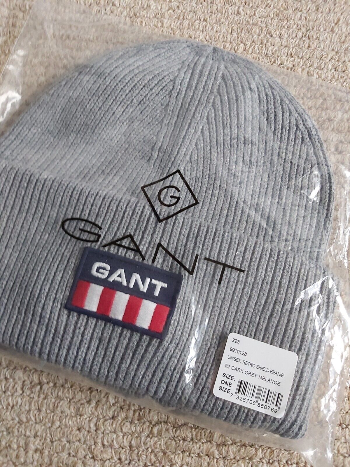 Genuine GANT Dark Grey 10% WOOL LOGO Beanie Hat Unisex New TAGS 9910128