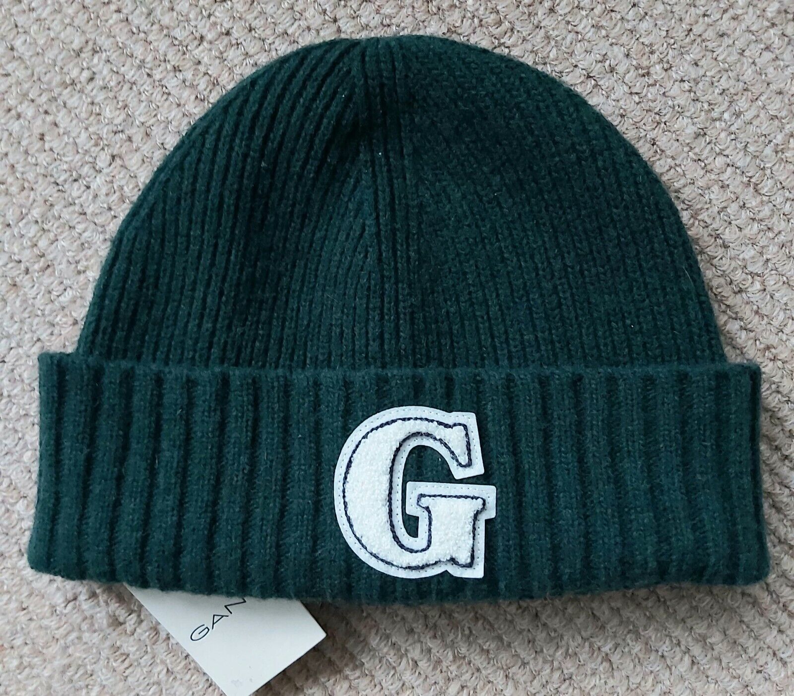Large GANT Tartan Green 80% Wool G BADGE Beanie Hat Unisex New TAGS 9910030