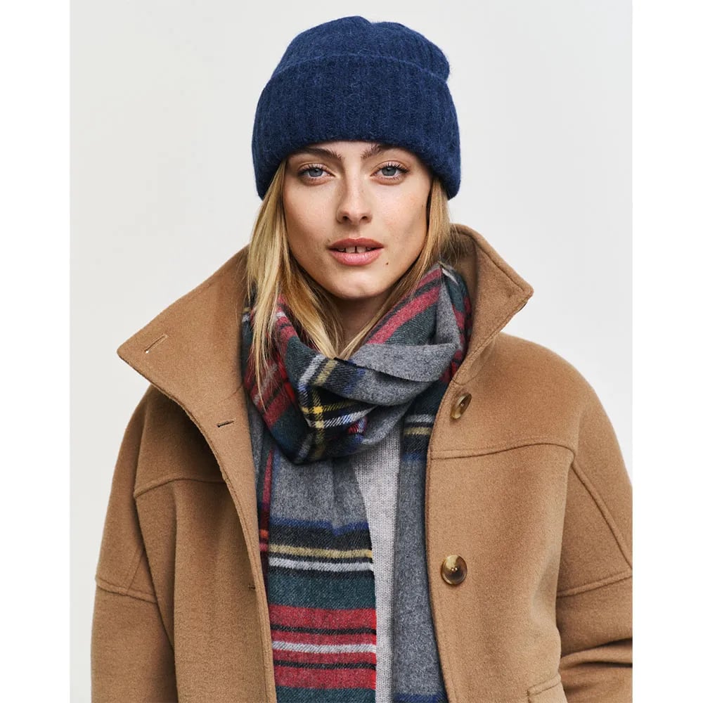 GANT Wool Scarf & Beanie Hat Gift Set, Navy/gold