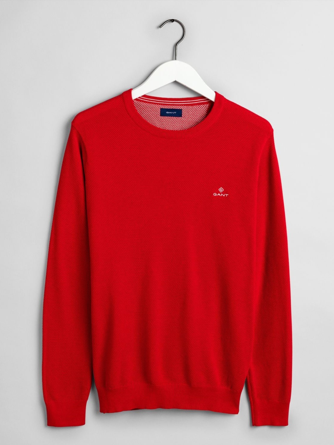 Gant Men's Cotton Pique Crew Sweater, Medium, Bright Red