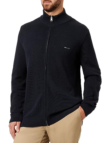 GANT Men's Cotton Pique Zip Cardigan, Evening Blue 1, XXL