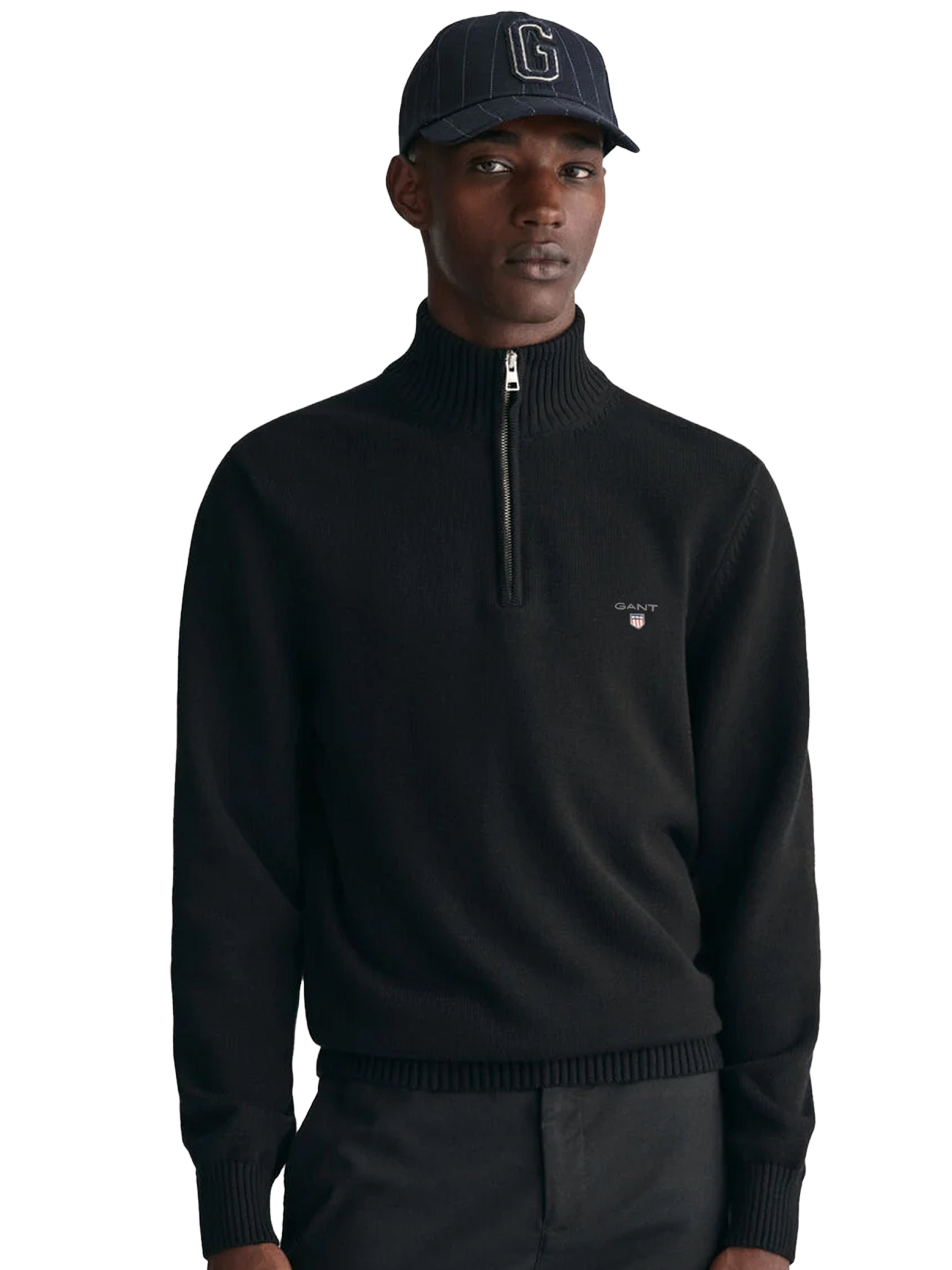 Gant Mens Half Zip in Navy Cotton - Size Medium